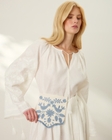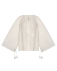 Матеріал: 100% льонДекор: машинна вишивка, китиці, мереживоКолір: молочнийКрій: oversize, зі змінним об’ємом рукава