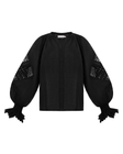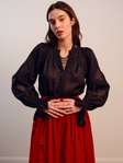 Обʼємні рукави з мʼякими брижами завершуються завʼязками з китиць — ненавʼязливий декоративний елемент, що додає руху й тактильності. Вишиванка легко поєднується з базовими речами та працює як самостійний акцент в образі.